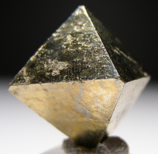 Complete, nearly perfect single octahedral Pyrite crystal (just a tiny chip on the bottom termination). Ex. Don Belsher.