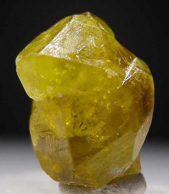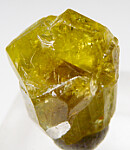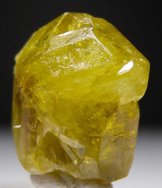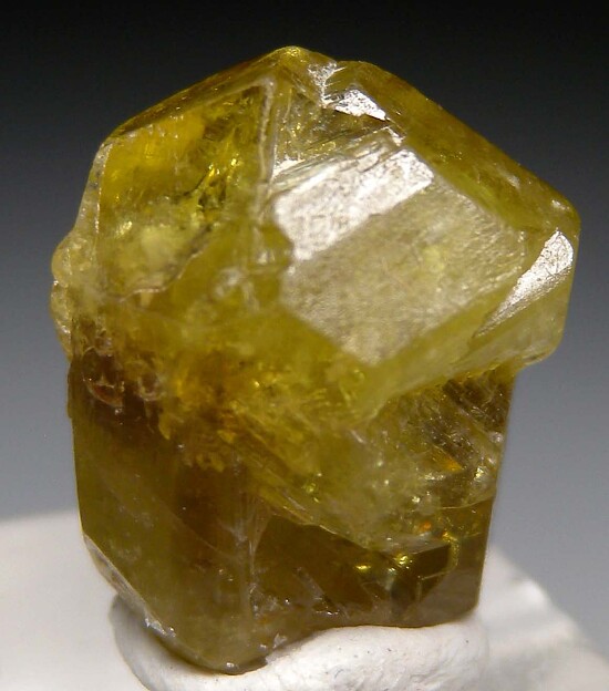 Blocky sixling crystal of golden, partially gemmy Chrysoberyl. Good, stout gem crystal that is hard to find. Ex. Bill Sanborn, Dan Carlson.