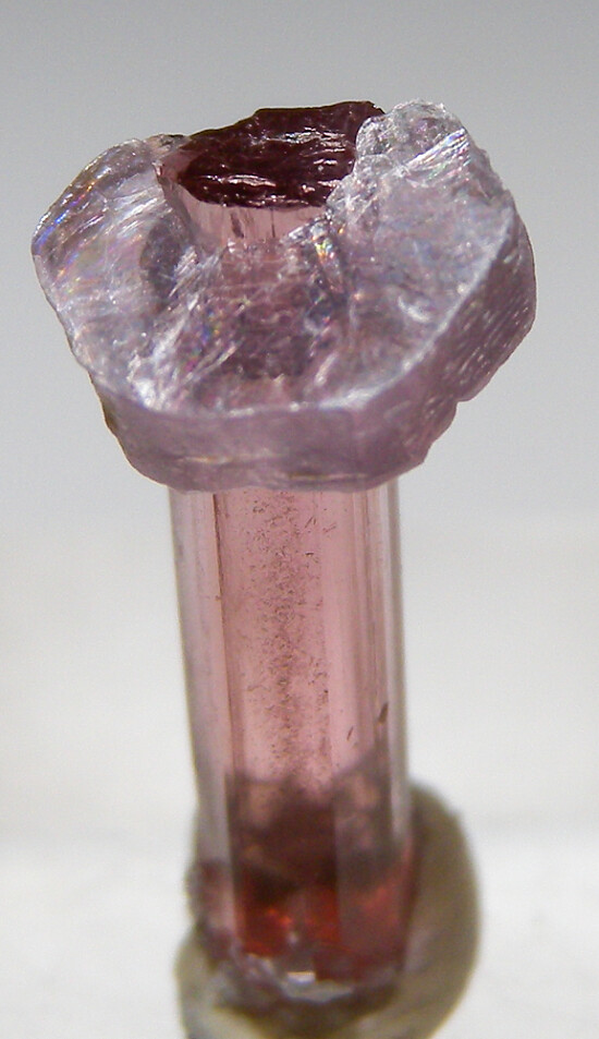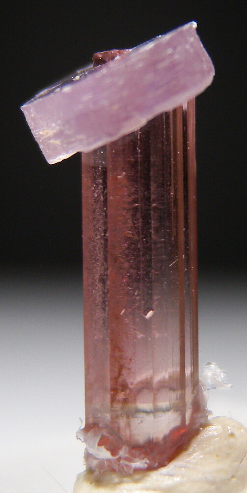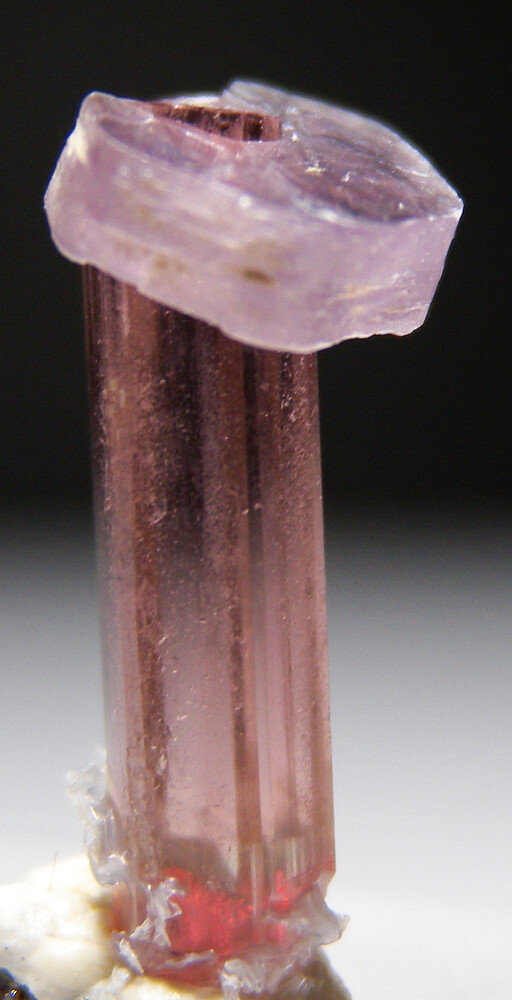 Cute thumbnail of a 7mm Lepidolite on a transparent pink Tourmaline.
