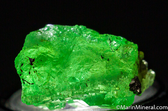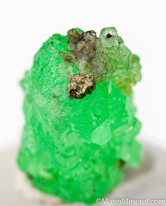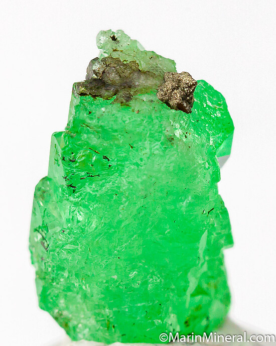 Elongated faden style Grossular var. Tsavorite with attached Pyrite. Tsavorite is a green Grossular colored by chrome and vanadium.