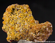 Satiny botryoidal Mimetite on clear Calcite crystals covering the front and back faces of a limonite matrix. In perfect condition. Recently mined in 2020 in Santa Eulalia.