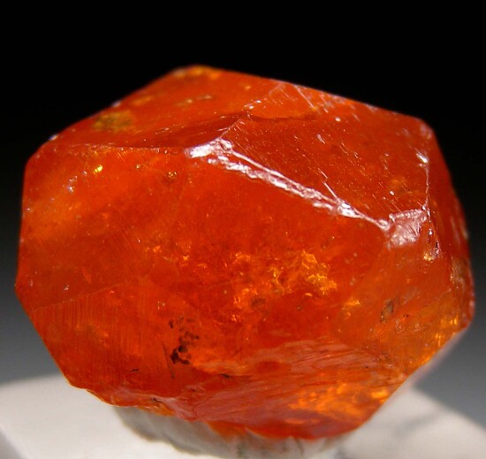 Gemmy orange Spessartine crystal from recent small scale mining at this locality. A complete crystal with good color and gem zones. Minor edge chipping, otherwise undamaged.