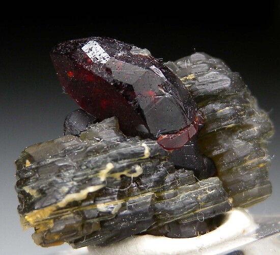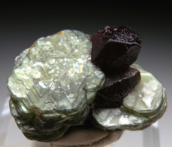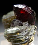 Chondrodite crystals to 1.5cm on green Clinochlore crystals. Excellent example from this fine.