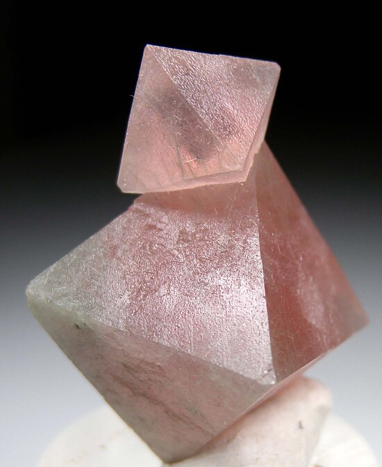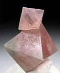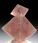 Two connected octahedrons of pink Fluorite. A perfect floater with no points of contact, complete all around. Ex. Stevia Thompson collection.