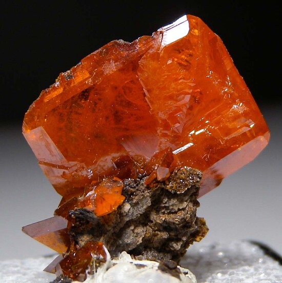 Translucent to transparent oragne/red Wulfenite crystal. Undamaged and displays well.