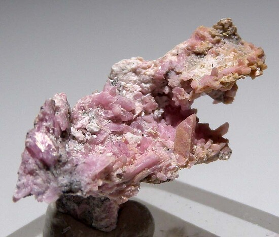 Well crystallized pink Inesite specimen from California. This is one of the few localities in the world to produce good Inesite specimens, and this is probably the best locality in terms of large, individual crystals.