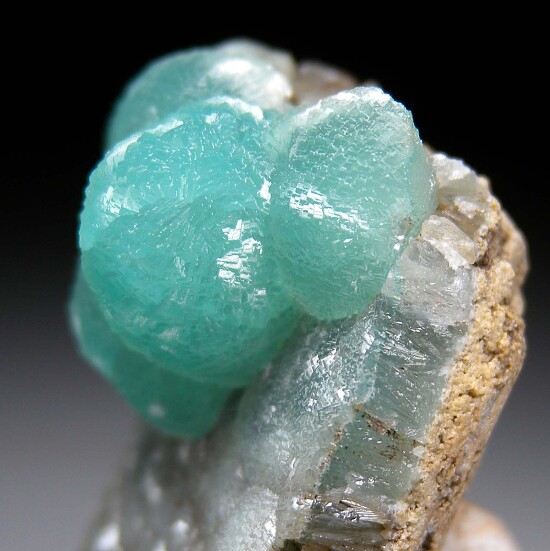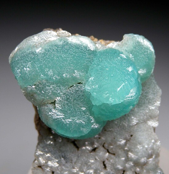 Two generations of translucent blue Smithsonite from recent finds. The first generation is a lighter blue forming an approximately 5mm coating over the matrix. The second generation is a deeper blue botryoidal cluster of Smithsonite with shimmering luster and a wonderful translucent color. Very aesthetic piece!