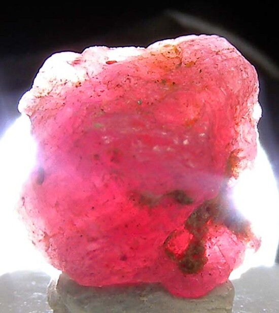 Rare New York Ruby crystal! Translucent with a prismatic, hexagonal form. From an old collection, these were rarely found in the Franklin Marble that runs from Sussex Co., New Jersey north into Orange Co., New York. This was likely found in Amity, Warwick, New York. A seldom seen New York classic.