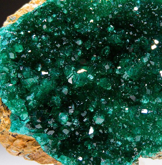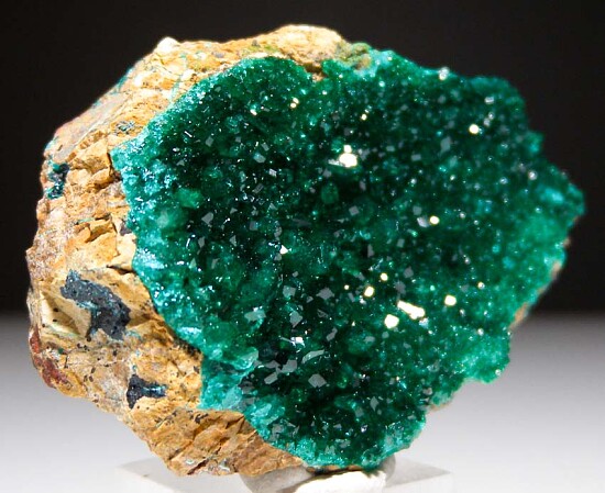 Drusy Dioptase across the front of a rock matrix. This specimen has BRIGHT, sparkly Dioptase, very nice and colorful. Recently mined.