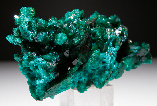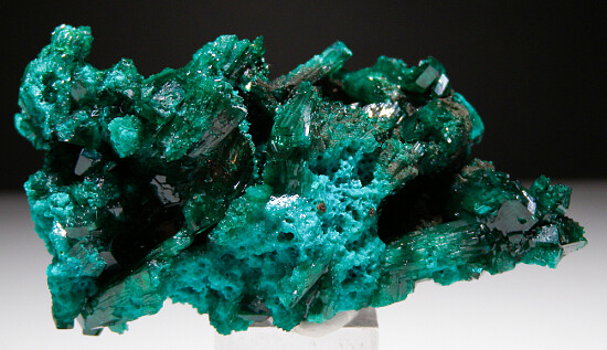 Specimen of solid Dioptase crystals from recent finds in Africa. Neat large specimen with both sparkly, drusy Dioptase and larger individual crystals. If you ike Dioptase, this is nothing but Dioptase with loads of crystals.
