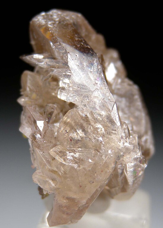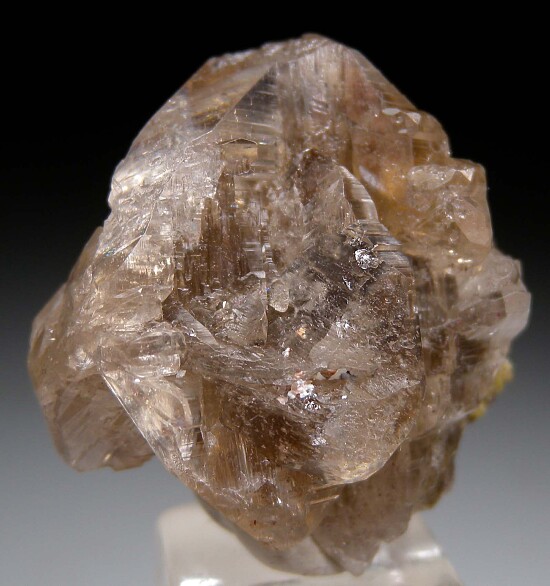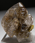 Glassy crystals of Cerussite grown atop a thin layer of Mimetite. Transparent with slight smokey color with no damage except for one small chip along the lower right edge. Beautiful specimen.