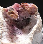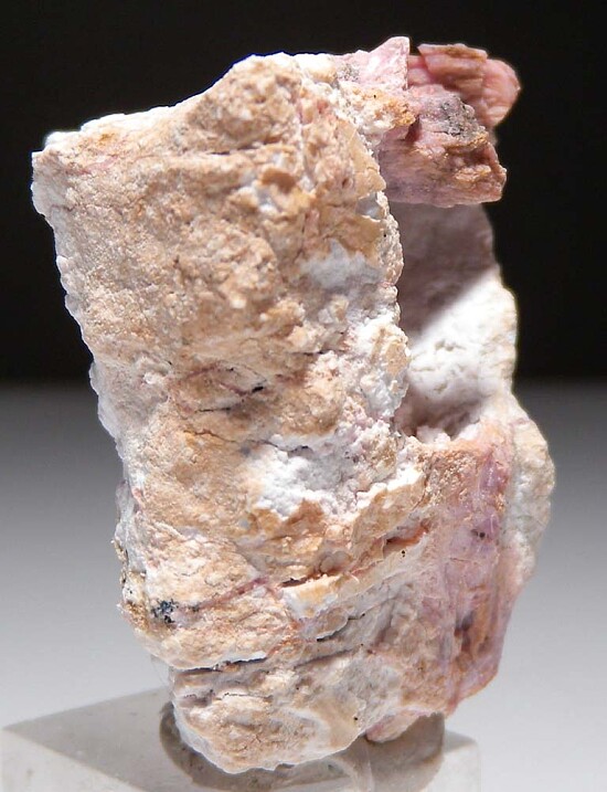 Large pink Inesite crystals on a lighter white matrix. While the spikey elongated crystals from South Africa and China may be better known, for sheer size of crystals, nowhere surpasses Hale Creek Inesite. Hard tosee in photos but the vug on top has crystals to over 1cm in size.