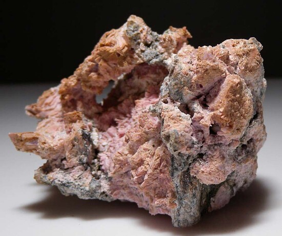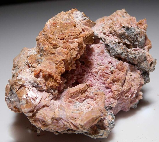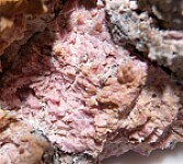 Bright pink crystals of Inesite on matrix from the classic California locality. This specimen features a open central vug lined with Inesite crystals.