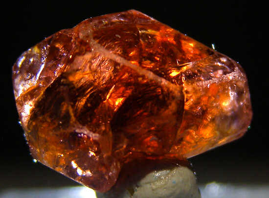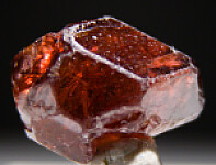 Lustrous euhedral single zircon crystal from recent finds in Mozambique. Wine red in color with good transparency. A floater with crystal faces on all sides.
