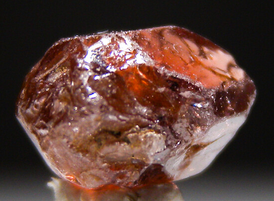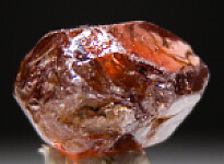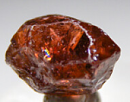 Lustrous euhedral single zircon crystal from recent finds in Mozambique. Wine red in color with good transparency. A floater with crystal faces on all sides.