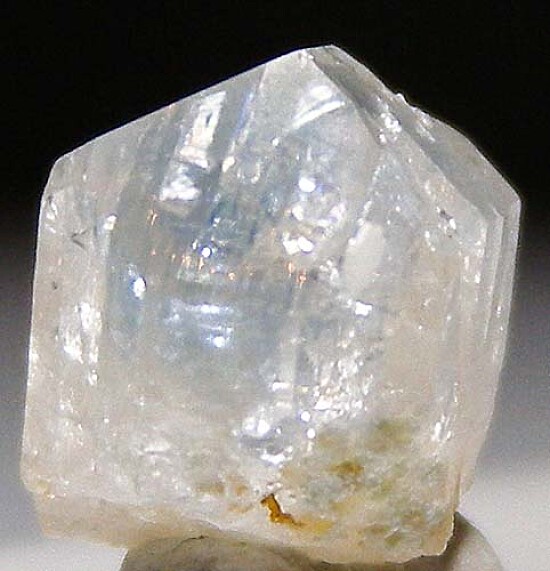 Gemmy single Euclase crystal with a faint blue stripe running vertically down the center. Well crystallized all around with perfect flat termination faces. Rare!