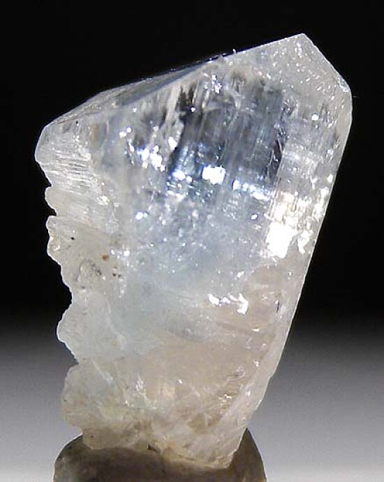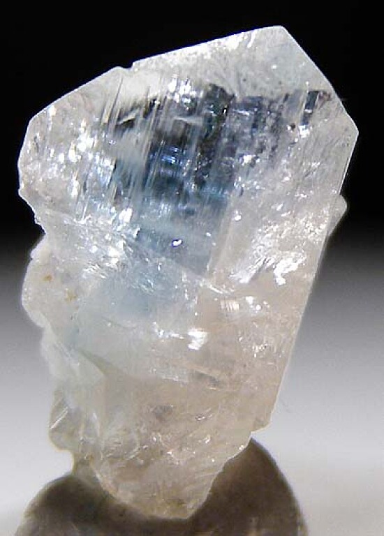Gemmy single Euclase crystal with a faint blue stripe running vertically down the center. Well crystallized all around with perfect flat termination faces. Rare!