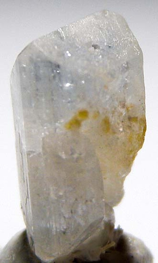Double-terminated crystal of rare Euclase from Brazil. Translucent to transparent with white and blue coloration, complete all around. Old Brazilian classics now hard to find.