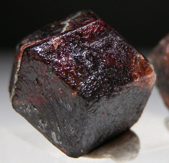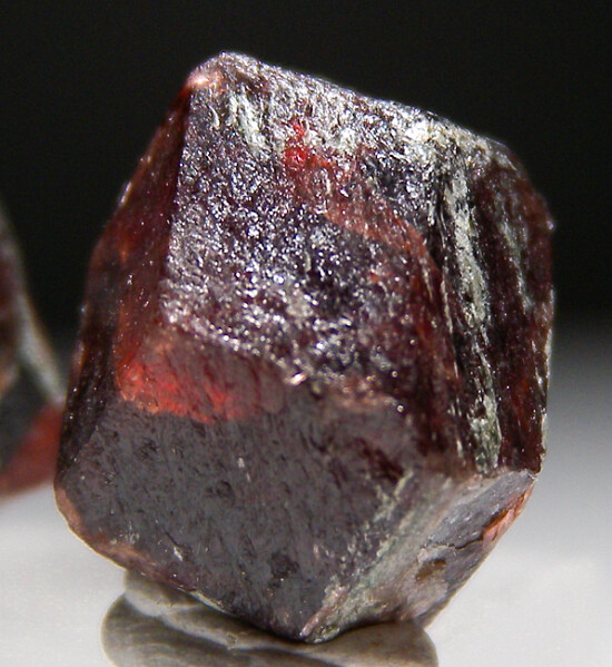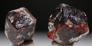Two complete garent crystals with deep red color. These are translucent with backlighting. These were in an old collection and the label indicated 'Grossular from Hoe Waid, Odenwald' but I believe the label was mixed up. The collection contained mostly eastern USA and European garnets. Nice crystals regardless.
