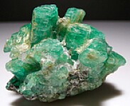 Cluster of bright green Emerald crystals with minor amounts of attached Biotite schist. The crystals aren't terminated but they are translucent with great color, and there are lots of them. Ex. Randy Parnagian collections.