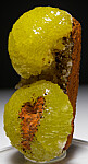 Two spherical masses of yellow Adamite on matrix. The Adamite crystal groups reach 2.7cm in diameter. Ex. Randy Parnagian collection from Gene Schlepp.