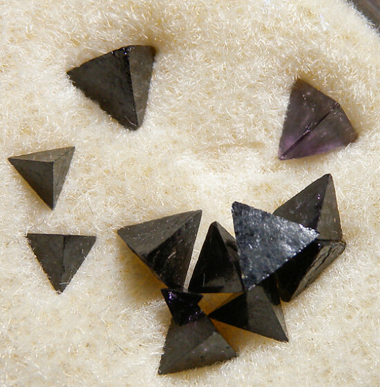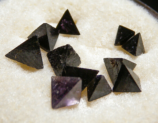 Set of 12 high quality Chambersite crystals. These all have perfect form and variying levels of translucency to tranparency with purple coloration. Ex. Fred Pough collection. These are the best quality he had.