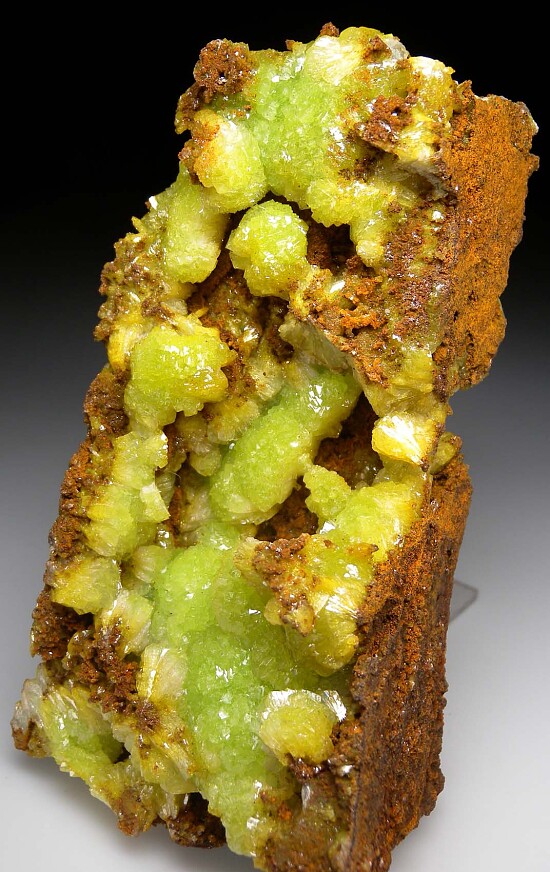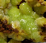 Greenish yellow Adamite specimen from the Oujela Mine. This is a seam of nearly solid Adamite with beautiful radial crystal groups all over. Importantly, it has the desirable greenish coloration. Ex. Randy Parnagian collection and comes with an old Gene Schlepp/Western Minerals label.