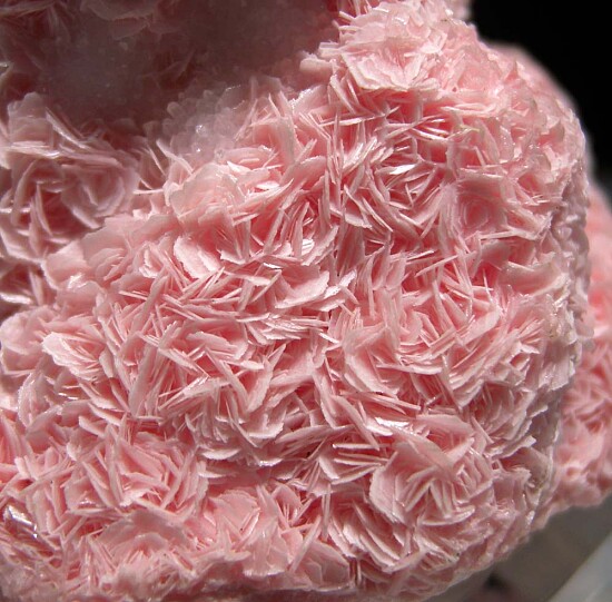 Mound-like formations of bladed Rhodochrosite crystals. Except for a small area of Quartz crystals, this is solid Rhodochrosite. Fine undamaged crystals all around. Ex. Randy Parnagian collection.