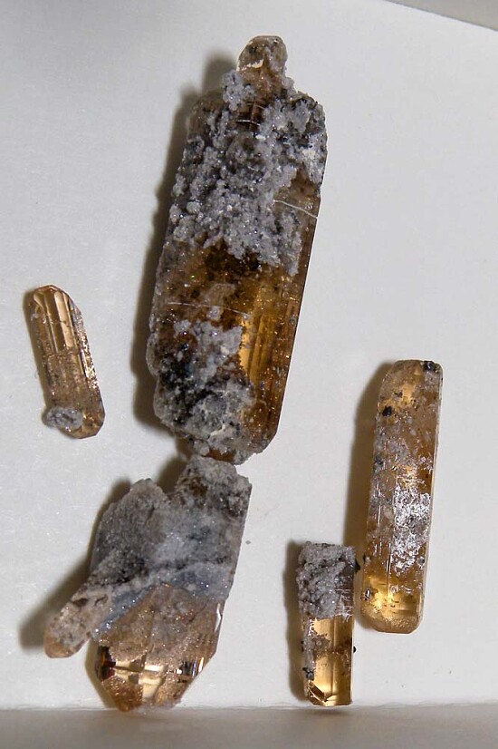 Six specimens of Topaz from the Maynard mine in Utah. This is a really nice group of crystals, two of which are double-terminated. I value this lot at $100 or more.