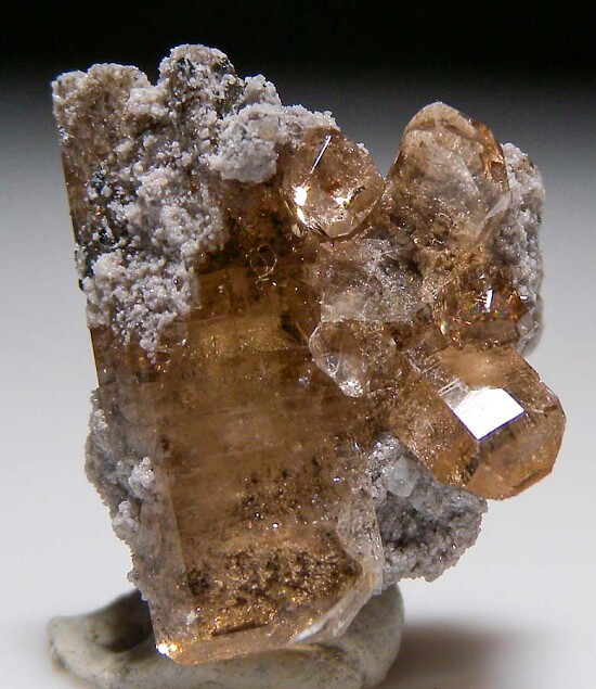 Lot of 4 Topaz specimens from teh Maynard Mine. The largest features a 3.2cm doubly-terminated Topaz crystal on matrix (undamaged). Are all glassy and gemmy crystals, all are undamaged and good specimens.