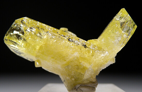Cluster of glassy and gemmy Brazilianite crystals. Sweet little specimen with great undamaged crystals. Ex. Len Pisciotta collection and comes with an old Steve Perry label. I value this lot at $200 or more.