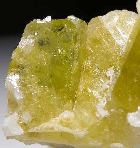 Cluster of glassy Brazlianite crystals with white Albite. There are a number of well terminated, fine crystals in this cluster whowing areas of transparency. Ex. Len Pisciotta collection.
