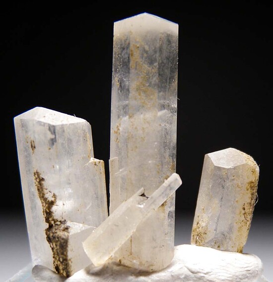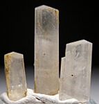 Three crystals of Natrolite from the Benitoite Gem Mine in California. All 3 are translucent, perfect and well terminated crystals (could use some cleaning still). A great addition to a Gem Mine suite. Ex. Chuck Trantham collection.