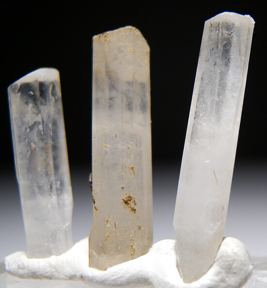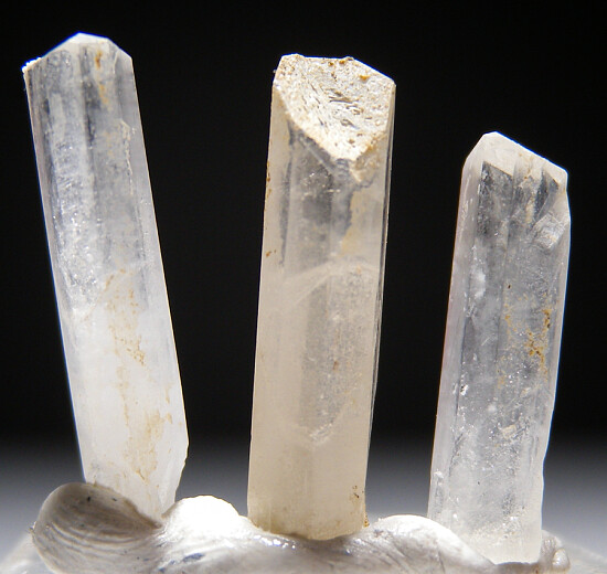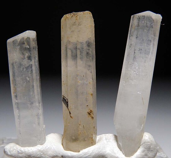 Three crystals of Natrolite from the Benitoite Gem Mine. Translucent and complete all around. Excellent and harder to find addition to a Gem Mine suite.