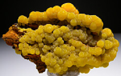 Botryoidal, satiny yellow Mimetite. This is old material rarely seen now in this quality. Good Mimetite is present on all sides. It's also in pristine condition. Ex. Randy Parnagian collection.