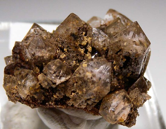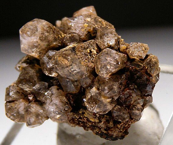 Cluster of glassy, transparent Quartz crystals with inclusions of pink Rhodochrosite. Rare material, with the best I've seen coming from Mexico.
