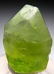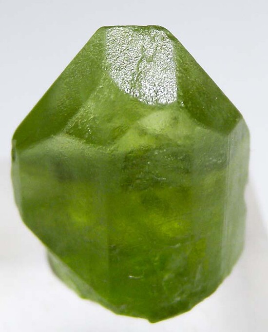 Transparent single Peridot crystal from Pakistan. Highly transparent and complete all around with a bit of contacting at the base of the backside.