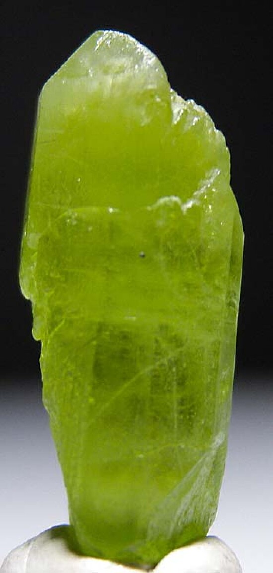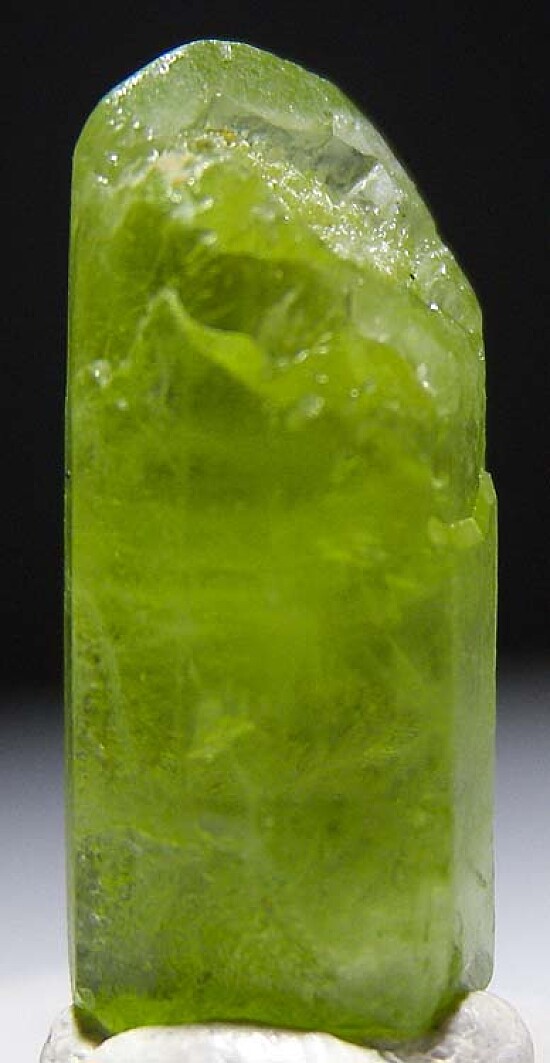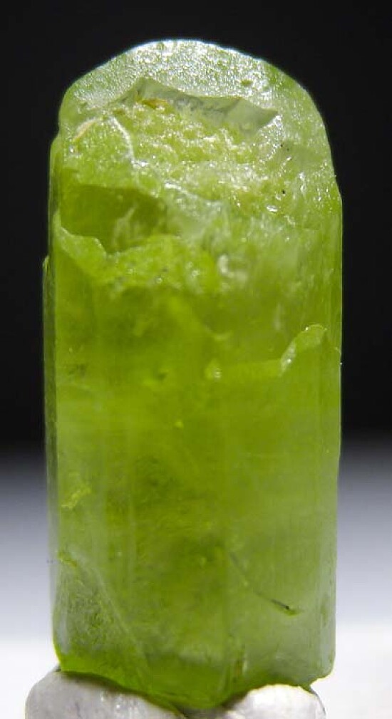 Single Peridot crystal with good green color and areas of transparency. This crystal has good flat faces and more sharp edges than many.