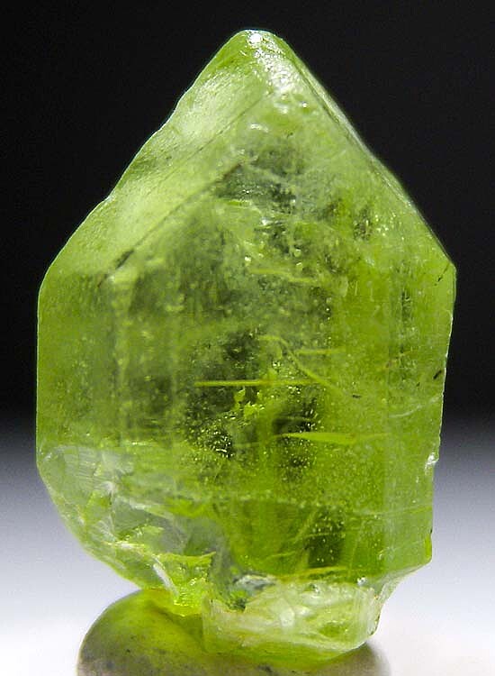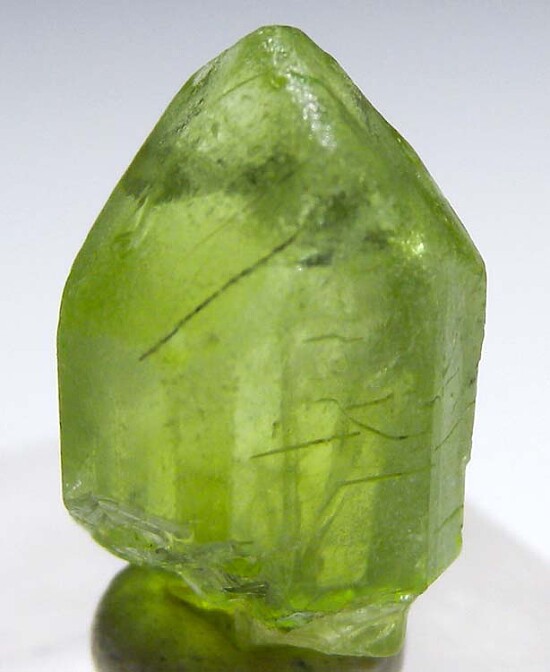 Transparent single Peridot crystal from Pakistan. Highly transparent and well terminated.