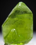 Transparent single Peridot crystal from Pakistan. Well terminated and good from front with an indentation on the back from another crystal. Sharp crystal with good color.