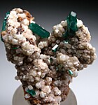 New find of Dioptase crystals with white Willemite crystals from near Mindouli. The Dioptase crystals reach 1.1cm in size. The Dioptase grow atop white Willemite crystals. Lots of good Willemite crystals all over.