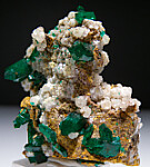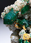 New find of Dioptase crystals with white Willemite crystals from near Mindouli. The Dioptase crystals reach 1cm in size. The Dioptase grow atop white Willemite crystals. Good crystals on all sides.