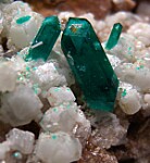 New find of Dioptase crystals with white Willemite crystals from near Mindouli. The Dioptase crystals reach 1.5cm in size and the largest is doubly-terminated. The Dioptase grow atop white Willemite crystals.