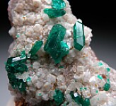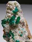 New find of Dioptase crystals with white Willemite crystals from near Mindouli. The Dioptase crystals reach 8mm in size and include some doubly-terminated crystals. The Dioptase grow atop white Willemite crystals. Some of the smaller Dioptase are transparent. private_notes