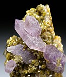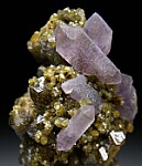 Uncommon specimen of purple Amethyst crystals on green Andradite crystals. The Amethyst crystals reach 1.7cm and include 4 doubly-terminated crystals.