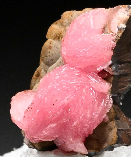 Crystals of pink Rhodochrosite in somewhat botryoidal form on matrix.