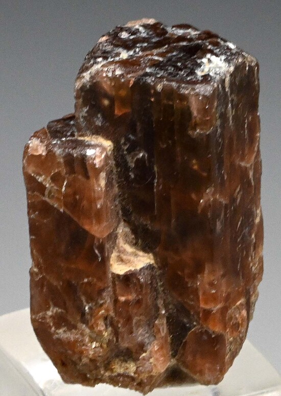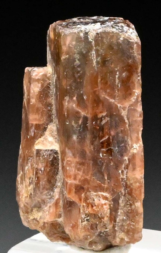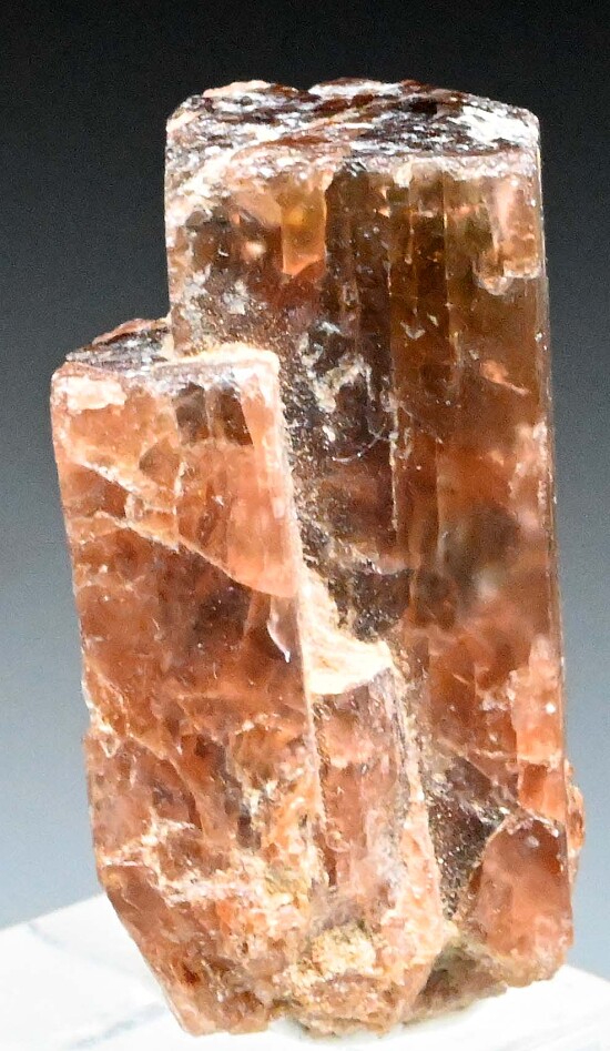 Translucent Andalusite crystal, with a second side crystal in parallel growth, from Brazil. Well terminated crystals. Ex. Luis Menezes collection. Andalusite is an uncommon gem species rarely seen in good collectable crystals.