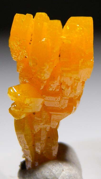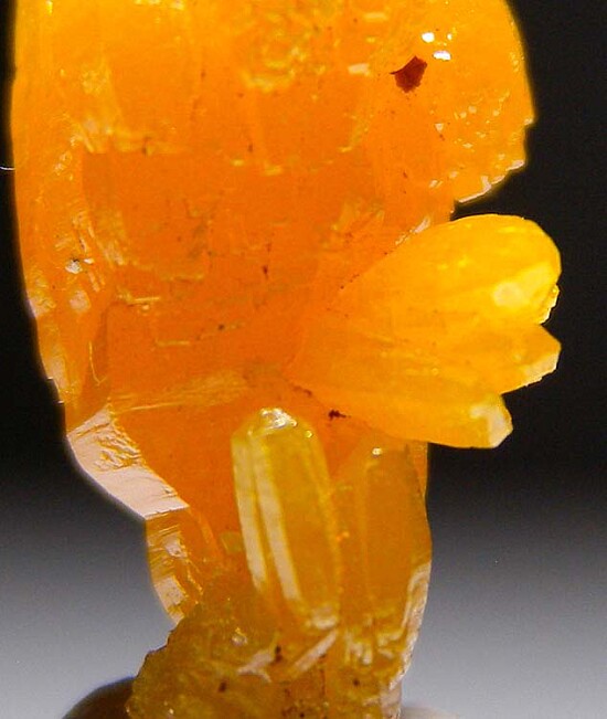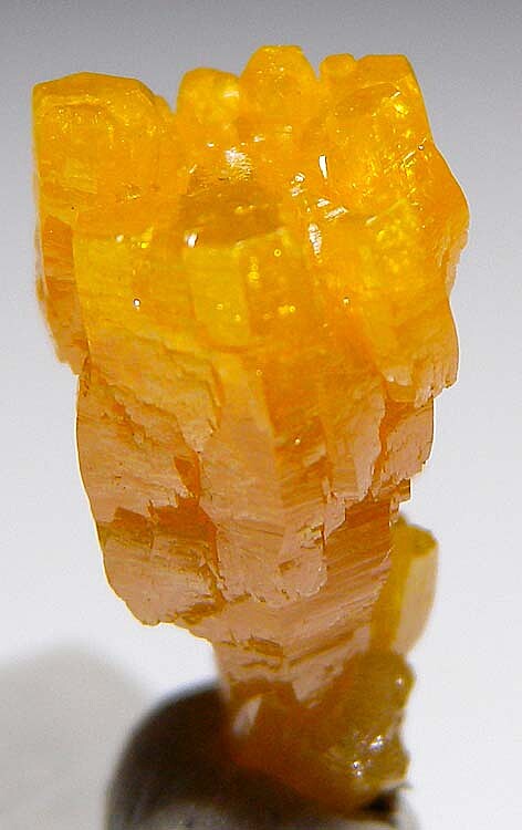 Glassy golden yellow single Mimetite crystal from old finds in Thailand. Complex form, glassy luster, and great color characterize this one.