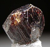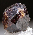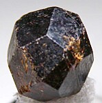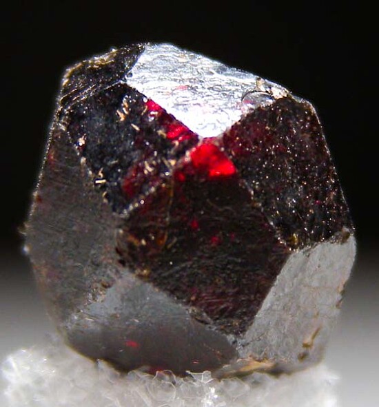 Single Almandine garnet crystal from Zimbabwe. Sharp, well crystallized specimen that shows bright red color when backlit. Complete and udnamaged. Ex. Dennis Ewell collection.