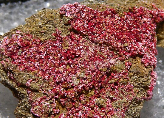 Pink Erythrite crystals on matrix. Ex. Dennis Ewell collection.